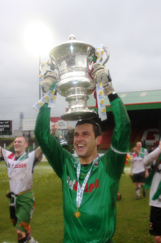 Eddie Patterson made Elliott captain of Glentoran in 2013. Together they won 2 Irish Cups. He said of his time with Elliott: “Elliott Morris is a Glentoran man through and through. I saw what the club meant to him in my first full season in charge at Glentoran in 2012/13. That was probably the toughest of all seasons in Glentoran’s history with players going unpaid for long spells during the season. Elliot as one of the senior pros at the club , didn’t miss a single training session and joined me and backed me during this very difficult period in trying to keep the players giving their all for the shirt on the training ground and on the park. That led me to make him captain in Nicky’s absence on the park and then making him captain the following season when Nicky moved on. This was an example to the younger and new players at the club. In the three and a half years I was at the club I never had a bad word from him and his professionalism and dedication to Glentoran football club is well appreciated by all Glentoran supporters. Oh, and I forgot to mention...I think being one of the best goalkeepers in the Irish league for many seasons plays a part in that appreciation from the fans, myself and the other managers past and present that he played under”.