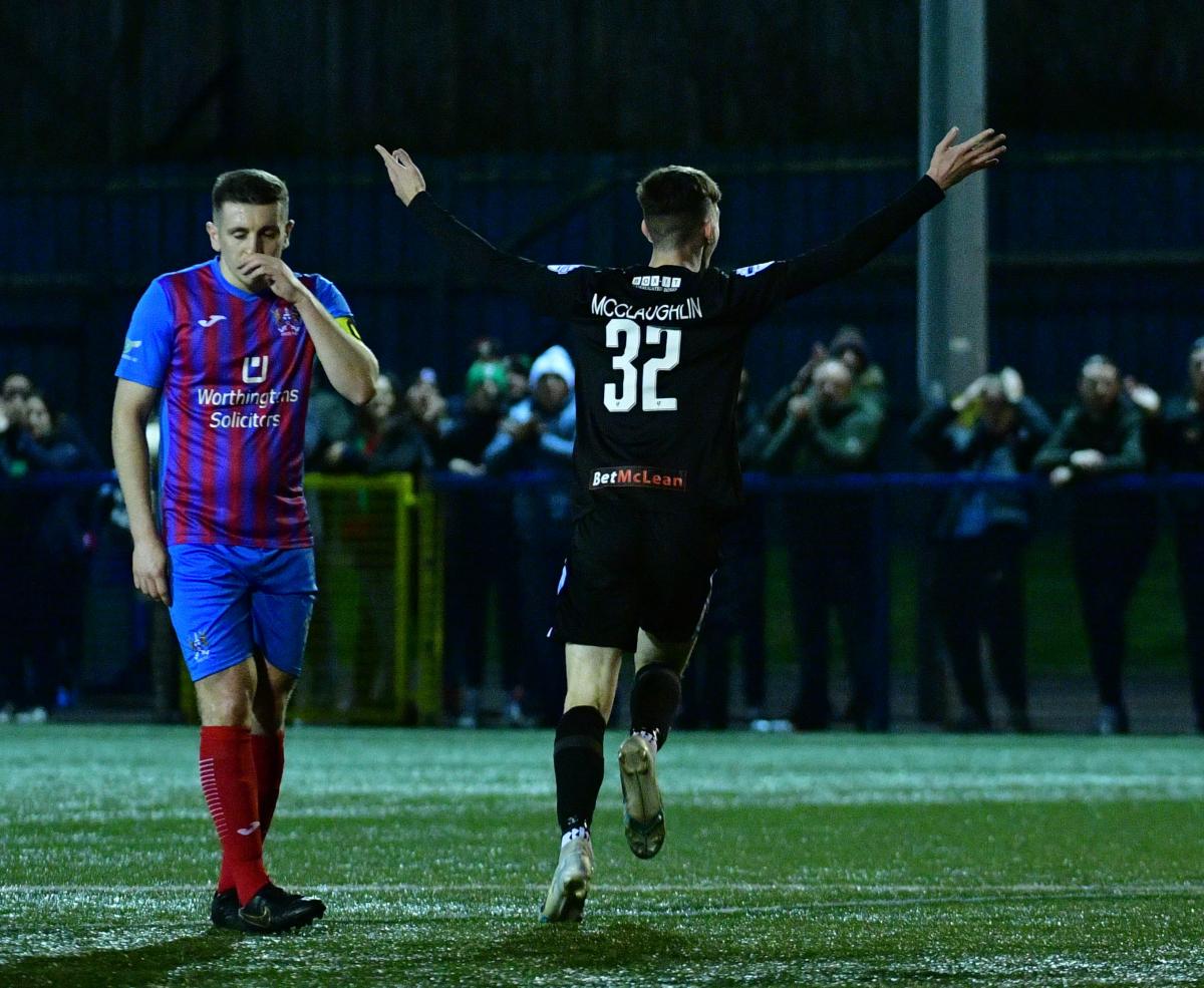 With 4 minutes remaining Marcus Kane set Jonny Russell clear down the left. Russell was crudely taken down though on the edge of the area. Shay McCartan went for goal with the free kick and his curling effort seemed destined for the top corner but Craughwell managed to get a hand to it. Unfortunately for the home keeper the ball fell to Purkis who bundled it in. The Glentoran number 22 almost grabbed another in the final minute but seemed to be pushed as he reached Rory Donnelly's cross and his header went over the crossbar.