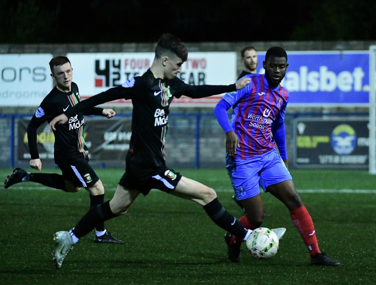 On 3 minutes it was 2-nil. This time Ally Roy collected a pass from Terry Devlin on the opposite corner of the area, again cutting inside Luke McKendry before unleashing a second powerful drive past the home side's keeper. Jason Craughwell was in action again on 11 minutes, tipping Danny Purkis's 20-yard effort over the bar. Glentoran were in total control at this point. The young side, with the comfort of a two goal cushion, playing some lovely football and always looking that they could add to their advantage.