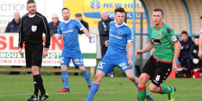 The home fans howled for a penalty on 42 minutes when Jonny Addis made contact with Adam Lecky in the area. The big striker went down very easily and that probably convinced referee Crangle that there was no real offence committed. Right on halftime a great ball from debutant, Ethan Warnock, found Curtis Allen on the edge of the area. Allen fired goalwards but his effort was just too high.