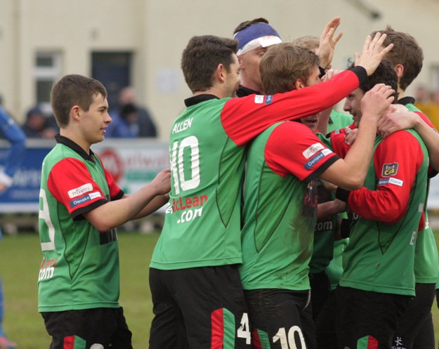 On 51 minutes McCaffrey drifted past a couple of players before finding Jordan Stewart. Stewart tried to find the top corner but his curling effort was well saved by Alvin Rouse. Jim O'Hanlon and Jordan Stewart had further opportunities but it was Stephen McAlorum who almost broke the deadlock on 70 minutes. Put through on goal by Niall Henderson, McAlorum fired a shot across goal. it looked destined for the bottom corner but Rouse got down to make a superb save. 16 minutes from time the Glens finally got their noses in front. Henderson went down the right and cut the ball back for McCaffrey. His initial shot was blocked but the ball broke for substitute Curtis Allen in the 6-yard box. Allen, with his back to goal, turned and thumped it past Rouse.