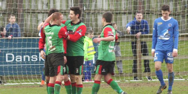 On 77 minutes it should have been 2-nil. Stephen McAlorum's free kick found Johnny Addis in the danger area. His downward header bounced up and over the bar though. Jordan Stewart and Curtis Allen had further opportunities to increase Glentoran's lead before Fra McCaffrey secured the points with a rather fortunate second. Glentoran were awarded a free-kick out near the left touchline, 30 yards from goal. McAlorum took it short to McCaffrey who swung the ball into the box where both Allen and Steve Feeney missed it. They did distract Rouse though and the ball hit the inside of the far post and went into the net. In added time Niall Henderson, who again gave an excellent performance in the right-back role, played the ball through to Aaron Boyd. He found McCaffrey and as Rouse rushed from his goal McCaffrey calmly slid the ball past him to make the final score 3-nil.