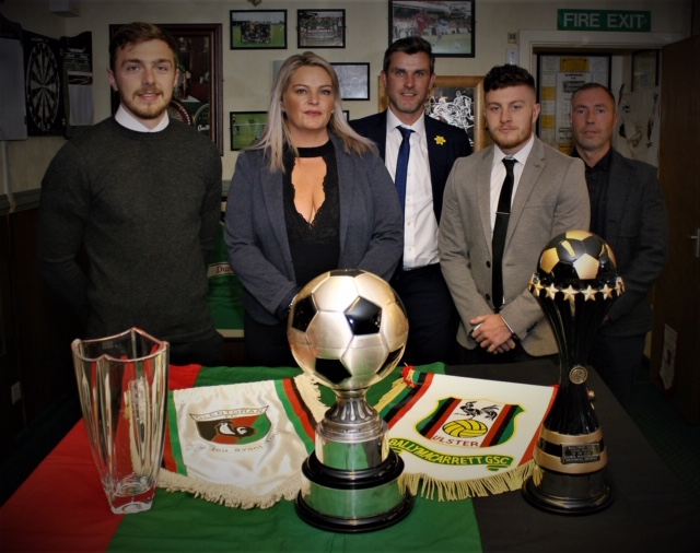 Philip Stevenson (VP Ballymac GSC), Elliott Morris, Robbie McDaid, Ian Clarke (Media Director, Glentoran FC), Nathan Kerr, Colin Jess (Vice Chairman, Glentoran 1882) and William Kitchen (Newtownards GSC)