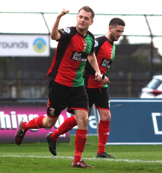 The only goal of the game came on 39 minutes. Stephen McAlorum found Steven McCullough on the left and his superb ball was met at the back post by Ciaran Caldwell who smashed it beyond the helpless Nelson in the home goal. A minute later and Caldwell's day was almost ended prematurely when a shocking tackle from Michael Ruddy left him rolling in agony. Ruddy was perhaps fortunate to only pick up a yellow card from referee Deighan. In first half stoppage time Tony Kane also picked up a yellow card for a very late tackle on Steven Gordon.