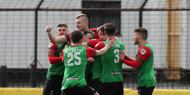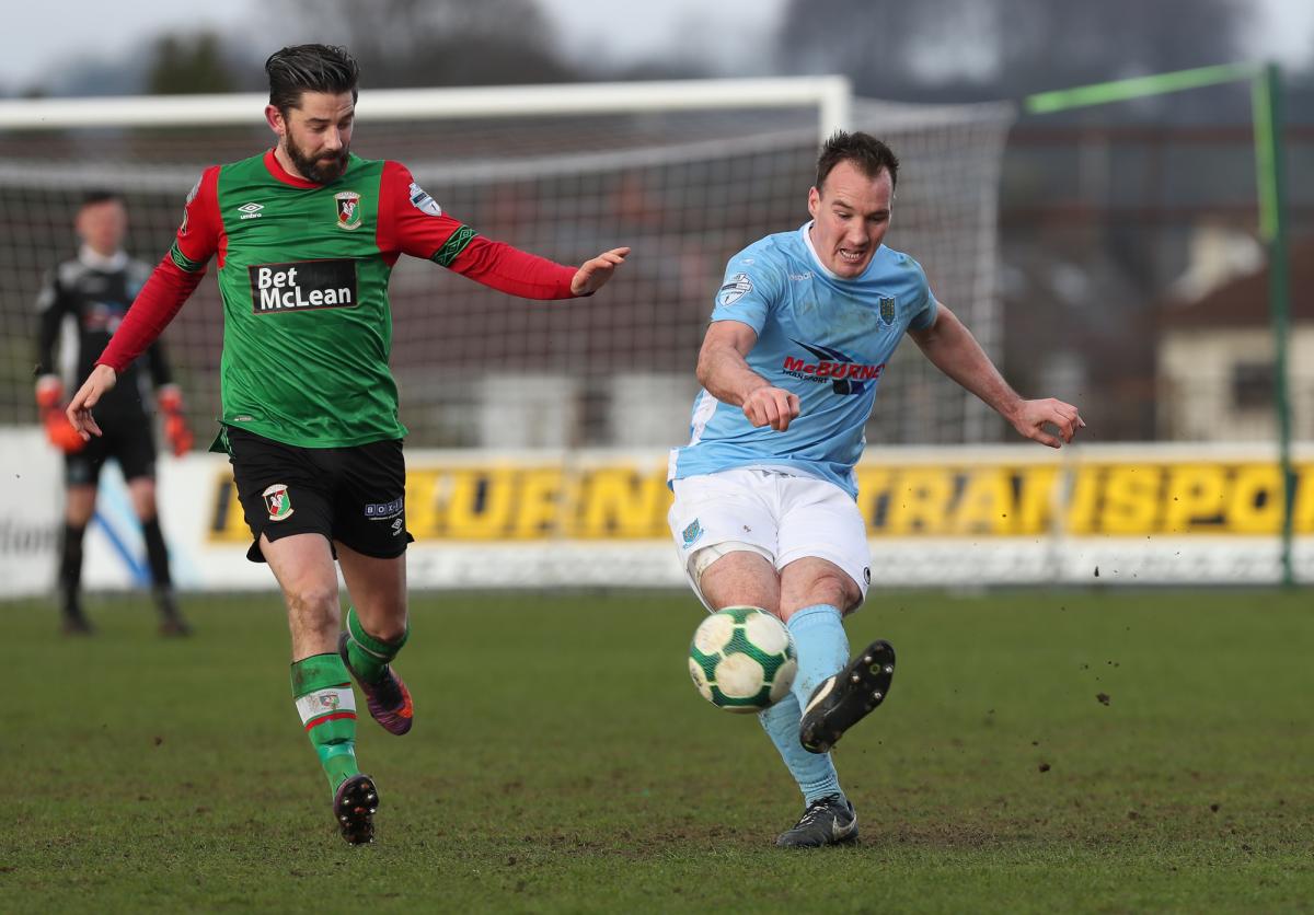The Glens almost went in front on two minutes when a left wing cross from McCarthy found Robbie McDaid but the club's joint top scorer was just wide of the target. Less than a minute later though Glentoran went in front and what a finish it was from Paul O'Neill. McCarthy's ball down the left was picked up by Curtis Allen. His cross looked to have been over hit but O'Neill stretched and hooked the ball past the keeper and into the far corner of the net. John Herron also had a half chance with just six minutes on the clock but his twenty yard effort went wide of the post.