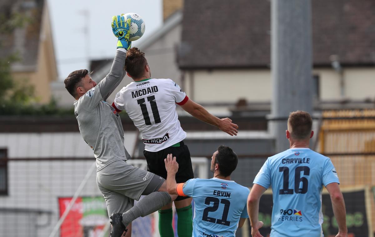 Mick McDermott made two changes to the starting line-up following last Saturday’s defeat at Dungannon, Paul O’Neill in for Thomas Byrne and Conor Pepper, making his first appearance of the season after suspension, replacing Malachy Smith at right back.