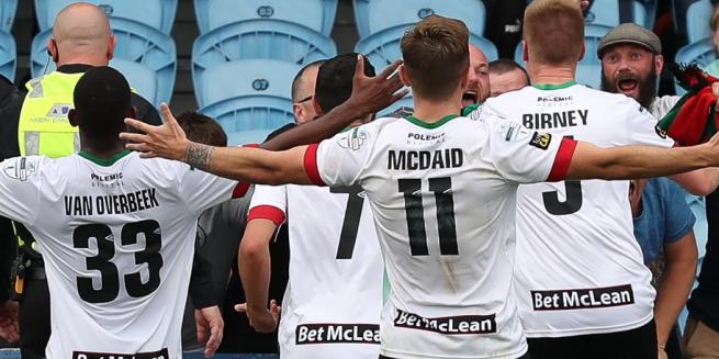 The visiting players, along with the fans, very much had their tails up now and pressed forward for the winner, but almost got caught with a sucker punch on the break as referee Andrew Davey waved play on after a challenge on Frazer with everyone else in the ground expecting a free kick. Then deep into the three minutes of stoppage time van Overbeek found space on the right, crossed for McDaid who got the break of the ball to swivel and fire home the winner with virtually the last kick of the game.