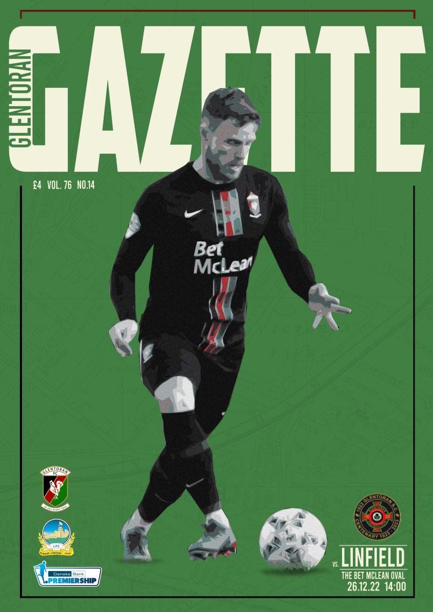In the Boxing Day Glentoran Gazette Mick McDermott says conceding a late goal at Cliftonville was frustrating, especially in the manner it was conceded, but admits we need to be more ruthless in front of goal. And he adds that the team needs to use the League Cup defeat by Linfield as motivation for the derby game. Ahead of the Big Two Christmas clash Jamie Megarry and Matthew Brown agree that it is a game which can make or break the holiday for fans. Marcus Kane tells us why he is helping an RVH unit through his testimonial while Brian McClelland recalls Nacho Novo’s short time at the Oval. In another 40-page programme, the publishers, the 1923 Committee, argue that goal line technology would be more useful to the local game than VAR, we assess the league’s standing in relation to our neighbours and query the overuse of statistics around the game. Summer signing Aidan Wilson is Beth Stafford’s cover star while Henry Muldrew finds himself in the East Midlands in the latest part of his English odyssey. And, of course, Norman Ternahan and Thomas Sewell bring all the match action from last Tuesday night in words and pictures. The Gazette, by the fans for the fans, is £4.