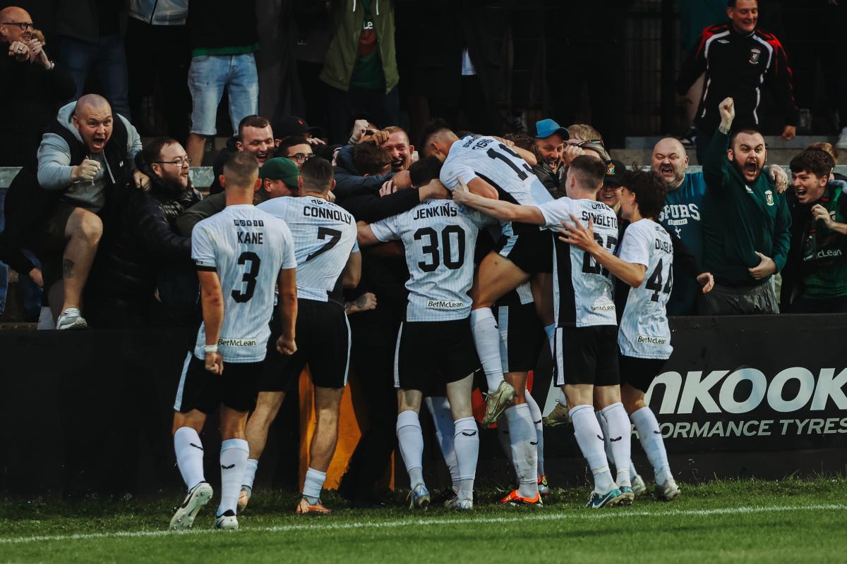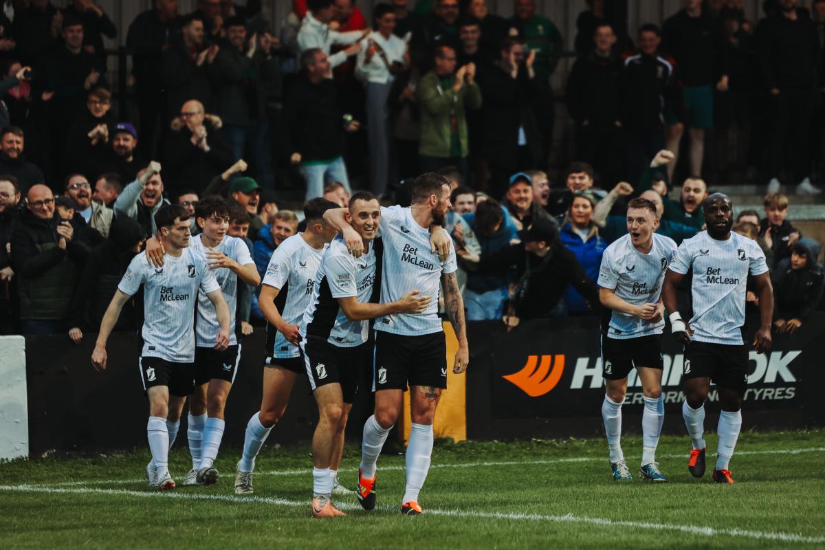 Declan Devine introduced both Nial McGinn and Wassim Aouachria in an attempt to bolster the frontline and on 77 minutes it paid off as Fisher rose to head home from a cross by James Douglas. As with last week’s late winner at Portadown there were scenes of both joy and relief as the Glens players and fans celebrated the goal together.