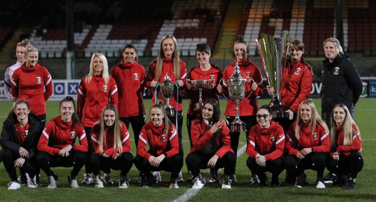 Prior to Friday night's Danske Bank Premiership win over Glenavon, 2021's all conquering Glentoran Women squad paraded their four trophies in front of a very appreciative home crowd at the Bet McLean Oval.