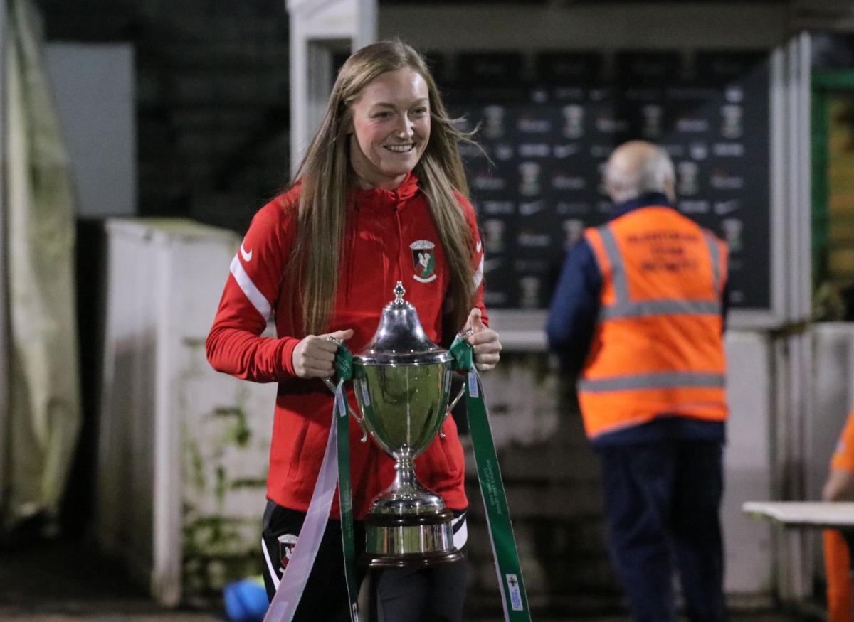 Glentoran Player of the Year Lauren Wade with the Irish Senior Challenge Cup