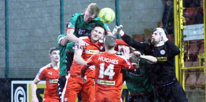 On 65 minutes Birney saw his header cleared from under the bar by a Reds' defender, before two minutes later Donnelly's low, fizzing shot took a deflection and had Morris scrambling frantically to turn behind for a corner. Before in the last big chance of the game with just 15 minutes to go defensive chaos ensued in the Glens defence as they failed to clear on several occasions, with the ball ricocheting to Hughes who forced Morris into yet another excellent save.