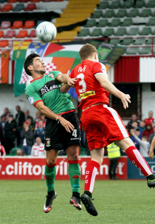 Within two minutes Cliftonville came close, with Jay Donnelly whipping a ball into the box and Daniel Hughes nodding just wide. Truth be told, Glentoran actually looked the better side for the first half hour - albeit in what was a dull and dour game. On 17 minutes Curtis Allen was inches from connecting to a Redman cross for a tap-in, whilst Marcus Kane vollyed well over soon after with the Reds' goalkeeper Jason Mooney stranded on his penalty spot. Eric Foley was dictating the play brilliantly, and the Glens were getting into good positions - unfortunately failing to create any real threats on Mooney's goal.