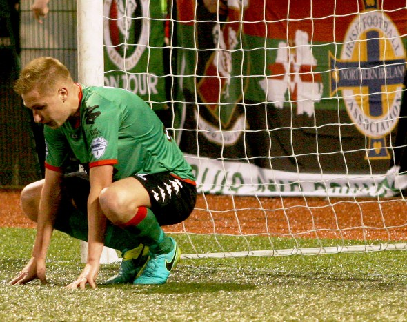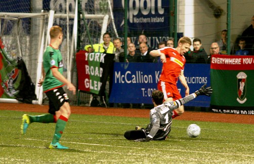 With everybody forward in injury time for the Glens, the inevitable happened. A long ball was won by the Reds' defence, and the pace of Cliftonville substitute Stephen Garrett saw him tear away from the last man. He rounded Morris with ease and squared to his teammate - via a nutmeg on Aaron Smyth - who tapped home to compile the misery on a below par Glentoran performance.