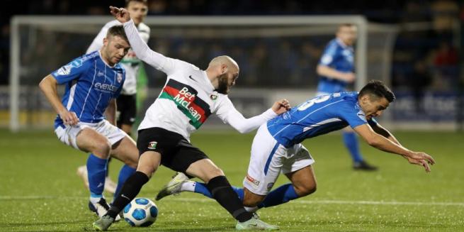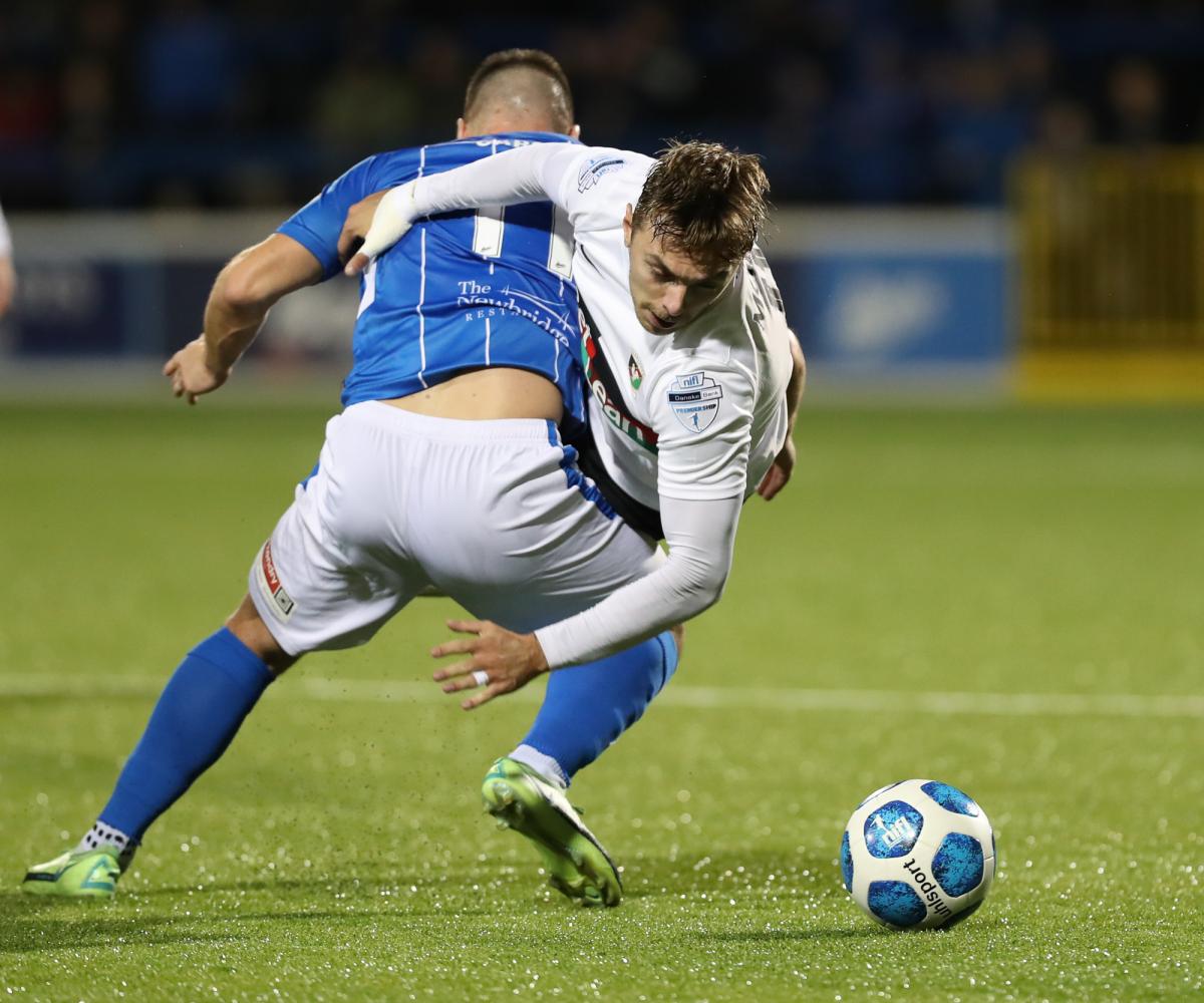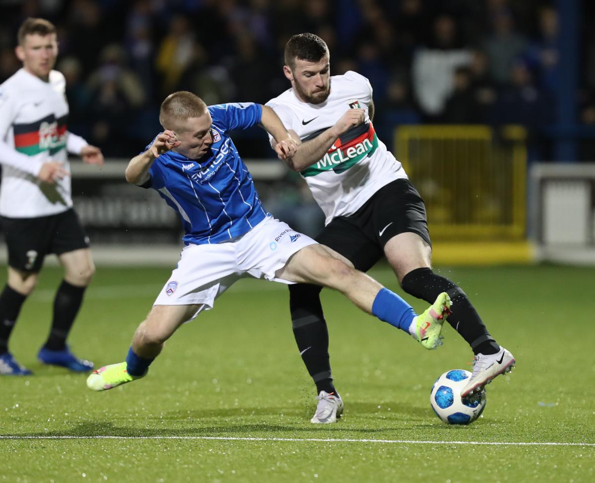 Mick McDermott was forced into a number of changes from Saturday’s home win over Warrenpoint. Ross Glendinning returned in goal for the suspended Aaron McCarey while Mal Smith started at right back for Rhys Marshall, rested due to still feeling the effects of the injury sustained at Carrick recently. Gael Bigirimana returned to midfield with Ben Cushnie returning to the bench for this one.