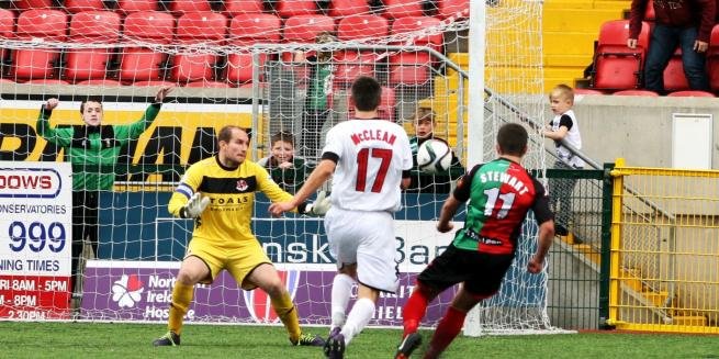 Just three minutes in and the Gibson Cup holders threatened Elliott Morris' in the Glentoran goal as Matthew Snoddy fired an effort inches wide of the upright, before Richard Clarke looked destined to score five minutes later - only for Calum Birney to make a brilliant tackle just as the former Glens midfielder was going to pull the trigger. McKee, who put in an industrious performance all game and never stopped running, was first to threaten for the Irish Cup champions but his long range curler was comfortably held by Sean O'Neill.