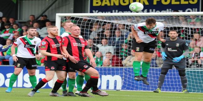 The game was only eight minutes old when Crusaders took the lead. Joe Crowe misjudged the bounce of the ball in midfield and the ball broke to man of the match Ross Clarke on the right wing. Clarke got past Marcus Kane and put a pinpoint cross to Jordan Owens who rose above Conor Pepper to head home. A goal we’ve seen many times at Seaview over the past decade.
