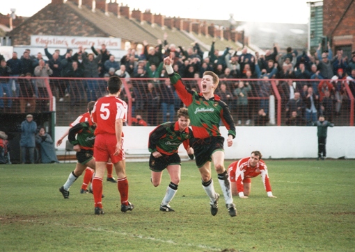 The semi-final that followed is as widely remembered in East Belfast as any Final when we defeated Linfield in dramatic circumstances at Windsor Park. Rory Hamill and Stuart Elliott thought they had sent us to another final but William Murphy's 92nd minute equaliser sent Linfield's fans into ecstacy. Such was the delight of both fans and players, some of them barely noticed the cross coming into their box and Sean Armstrong writing his name into Glentoran folklore heading home a late, late winner silencing the Kop and sending the North Stand to delirium.