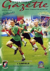 Armagh City were our first opponents in the 2001 Irish Cup. Two goals from Justin McBride, one from the penalty spot, and another from Gary Smyth saw us safely over the first hurdle. Former Glentoran player, Alfie Stewart brought his Moyola Park team to the Oval in the next round but the Glens proved too good for the junior side; Rainey, McCann, Smyth and Nixon all on target in a 4-nil win.