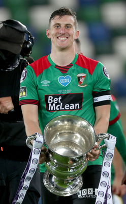 Moko is a much loved character around the Bet McLean Oval, both on and off the pitch. Since joining the Glens in July 2012 he has played 327 games, scored 30 goals (including the cup semi-final winner as sub in his first season) and won three Irish Cup medals with the club. Supporters and club officials alike appreciate and respect the absolute loyalty he showed to Glentoran during a very tough time, resolutely remaining at the club when many others jumped ship and how this has been appreciated by supporters. This commitment was recognised when he was appointed captain in summer 2017 when the club was at a low eb, and during his four seasons as skipper so far, he has led his teammates both on the pitch and in the changing room as the club has rebuilt and regained its status as one of the giants of Irish football. The photograph of an exhausted Moko with the Sadler’s Peaky Blinders Irish Cup in July 2020 has quickly become one of the most iconic in Glentoran’s illustrious history.