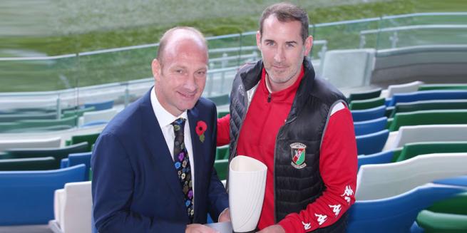 Speaking after receiving his award from NIFWA chairman Stephen Watson (pictured), Gary said the players "have bought into everything we have asked them to do. It is has been a super response".