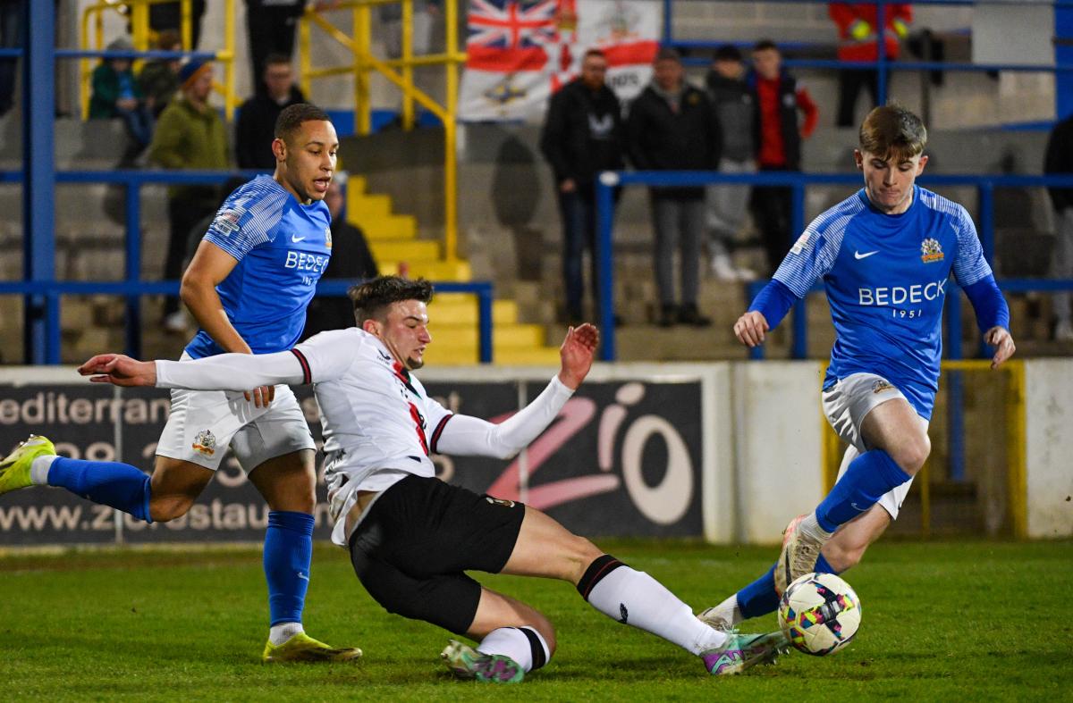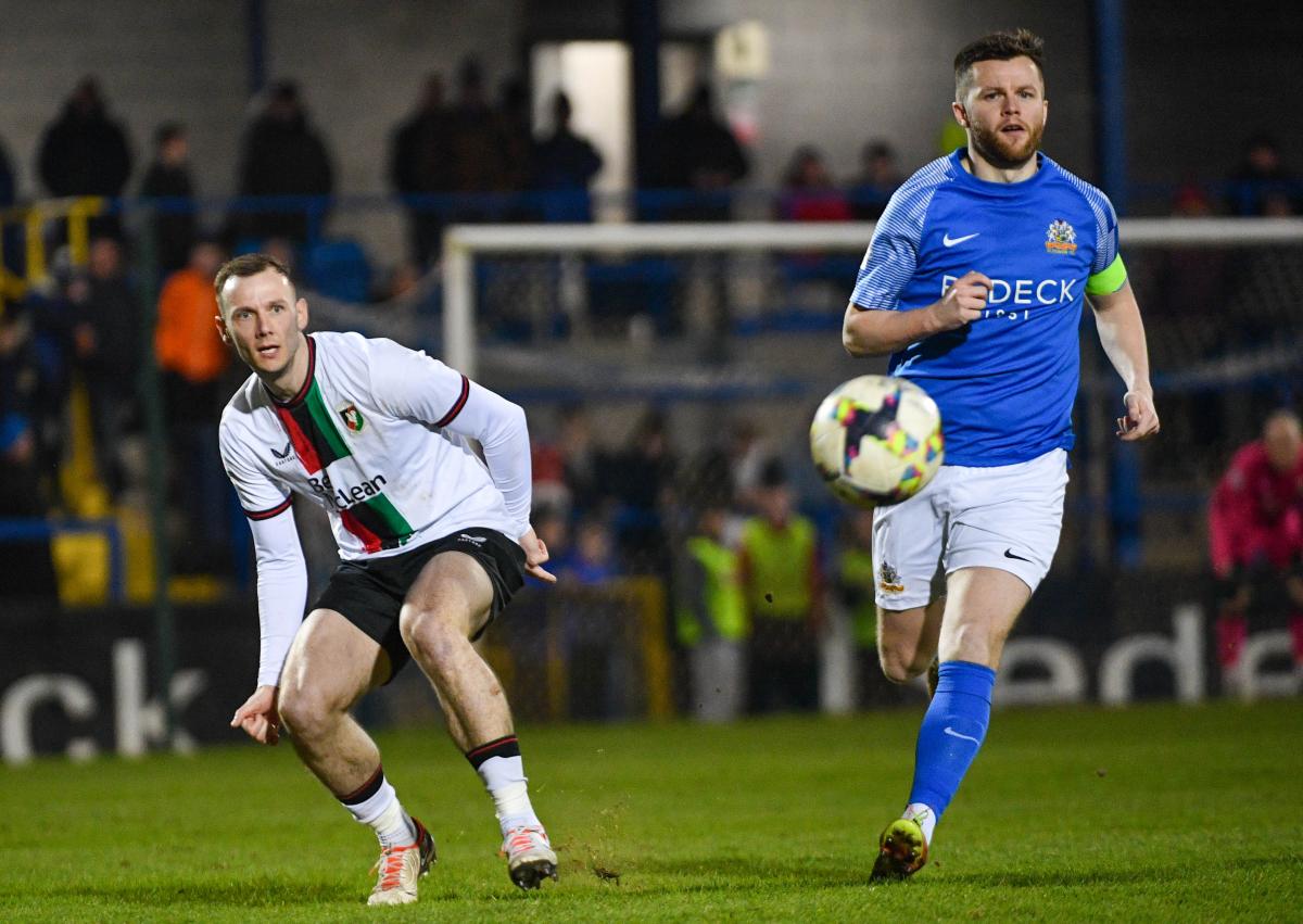 The Glens dominated the first half hour with only Fisher’s disallowed header and a long range shot from Fuad Sule two minutes later to show for it. In fact Aaron McCarey had to be alert on three occasions in a ten-minute spell late in the half to deny Glenavon the lead, while Charlie Lindsay shot over for the Glens just before the break.
