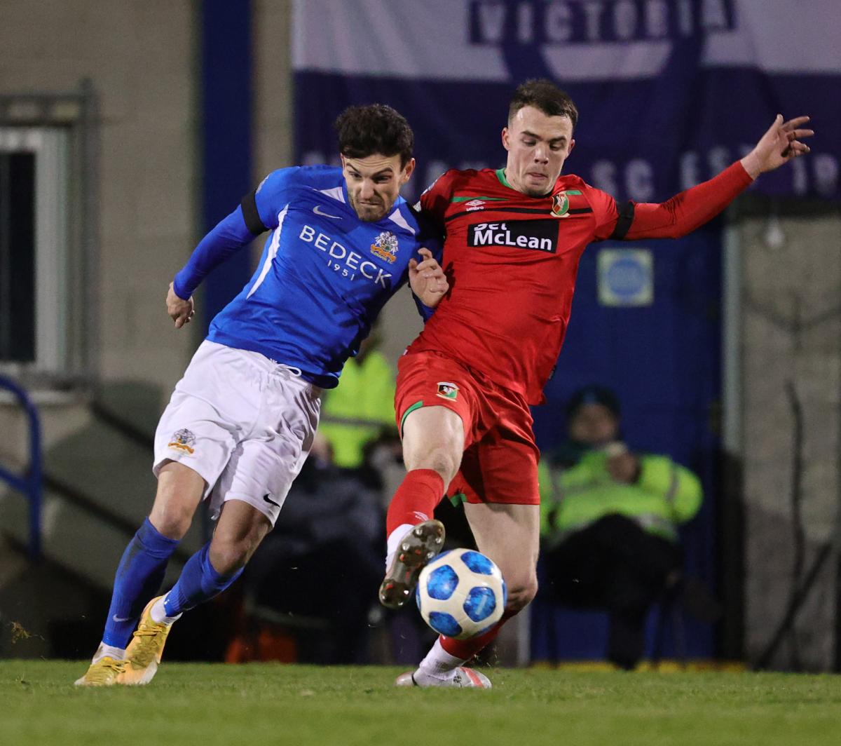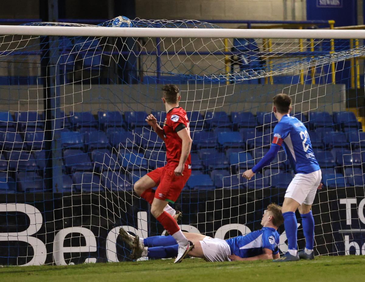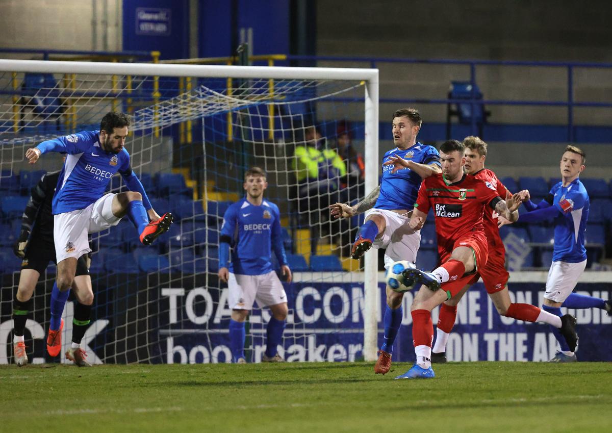 There was little goalmouth action in the opening 20 odd minutes of this game. Glentoran did work the ball well down the right with Rory and Jay Donnelly on 4 minutes before finding Marcus Kane in the area. Kane cut the ball back for Jay Donnelly but he fired wide of the post. At the other end a speculative effort from James Singleton flew well over the crossbar (15) and then a Michael O'Connor shot (19) brought a comfortable save out of Rory Brown.