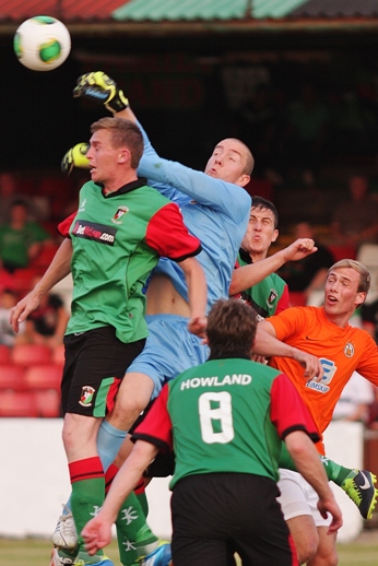 In a first half of few chances, the Glens started brightly, a glamour tie with Standard Liege in the next round providing an incentive for the team to finish off the job that they had started last week. With just two minutes on the clock, new signing Mark Miskimmin was sent through on goal however the former Donegal Celtic frontman’s attempt was parried behind for a corner by KR 'keeper Hannes Halldorsson. Another Glentoran chance went begging moments later, as Jay Magee failed to get a proper connection on his header from the resulting corner and the ball went well wide.
