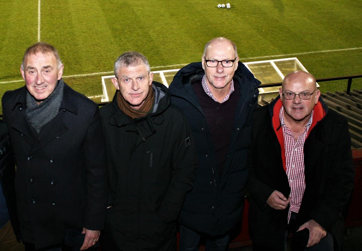 Four stars of the 1987-1988 Glentoran double winning team: Terry Moore, Jim Cleary, Barney Bowers and George Neill