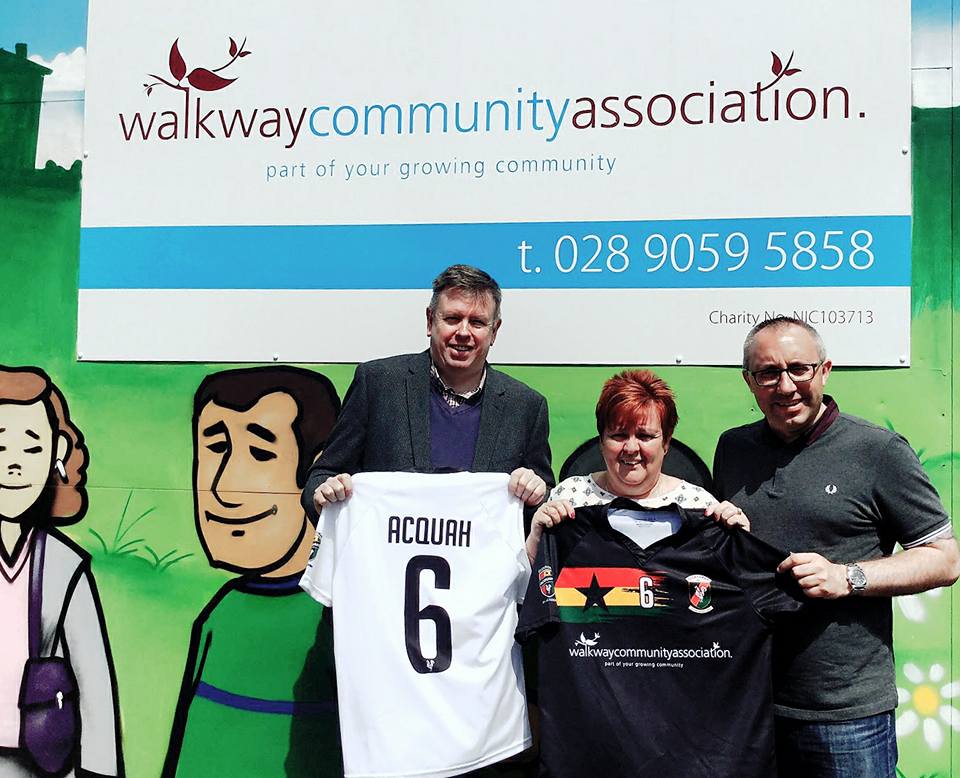 At the end of the month Afriyie and his backroom team will organise a match between two schools in Sunyani. The teams will wear the very first Glentoran A+ Academy shirts. This kit has been commissioned through a scheme involving our great friends at Walkway Community Centre on Finvoy Street and the Trust itself. We have been delighted to have worked with Walkway in the past during the Blitz commemoration and Rachel and her team are delighted to be involved with our return to Sunyani.