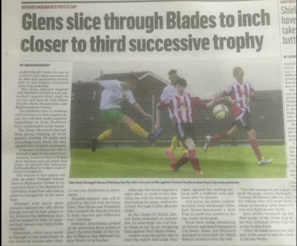 Glentoran 2004's victory and move towards a historic third consecutive Foyle Cup caught the attention of the Belfast Telegraph
