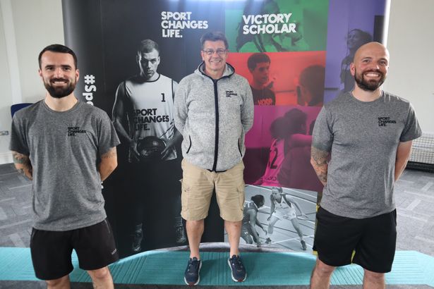 Gareth Brown and Chris Kirk with Gareth Maguire of Sport Changes Life