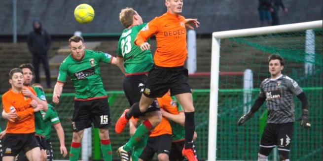 Just as it appeared the game was petering out we had a late flurry of chances, Harmon dragged a shot tamely wide after a good hooked cross by Allen and Steven Gordon wasted a great chance as Tuffey denied him one on one. The Lurgan blues had their late chances too, Sykes going closest as he hit the woodwork with a quick freekick that caught Glentoran sleeping. A draw probably the fair outcome but both sides will be disappointed not to have won. Glentoran are rapidly running out of time to challenge Glenavon for a top six place and after a missed opportunity today Friday’s trip to Solitude provides another stern test.