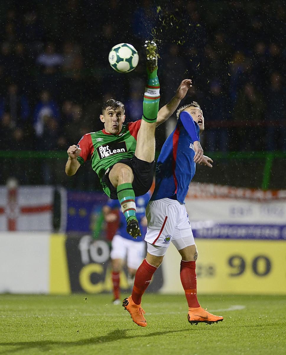 Glentoran pressed well throughout the first half forcing a number of half chances, the best effort coming from an athletic overhead kick from John Herron.