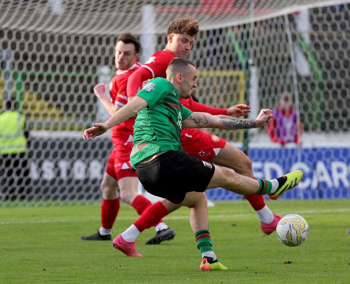 Chances would come and go for the home side in an attempt to force an equaliser. JJ headed tamely at McCarey after an inviting cross from Danny Amos. Dylan Connolly also forced a good save from Aaron McCarey from point blank range deep into stoppage time.