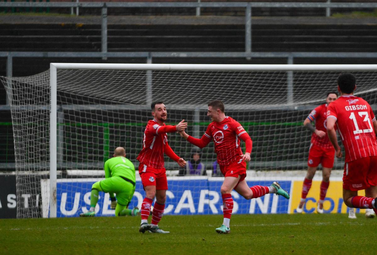Loughgall's opening goal came with just 5 minutes on the clock. Pablo Andrade crossed from the right and skipper, Nathaniel Ferris rose, unchallenged, to send his loopping header over Aaron McCarey and into the City End goal.