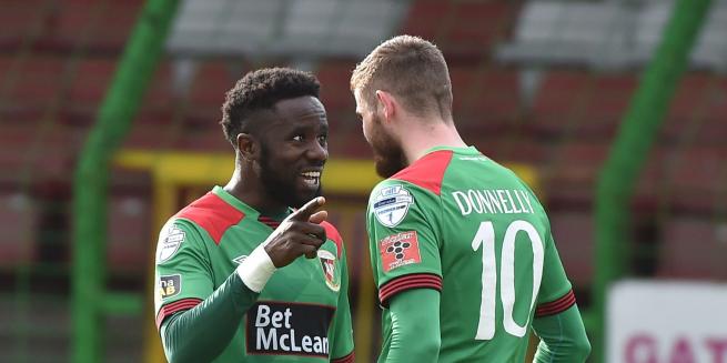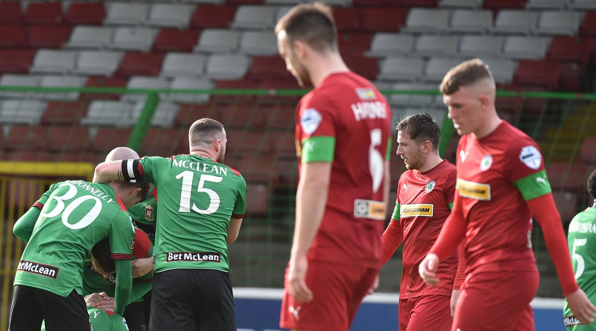 A couple of minutes later McCarey denied the Glens a second. Again Rory Donnelly was at the centre of things, going on a mazy run before trying to cut the ball back for Jay only to see the keeper intercept. Seanan Clucas then set up a chance for Jamie McDonagh but his header lacked power and the keeper gathered it comfortably. Rory Hale then drove a long range effort over the bar before Dale Gorman struck a 30-yard free kick at the other end; again too high. As the minutes ticked away and Cliftonville pressed for an equaliser, Glentoran had a couple of chances on the break. Jamie McDonagh's cut back on 87 minutes was mishit by Ciaran O'Connor.