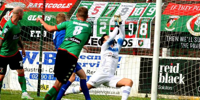 On 66 minutes Nacho Novo came off the bench to replace Jonathan Smith. 2 minutes later Novo's corner to the near post caused problems and the Swifts' defence were glad to concede another corner. The breakthrough that Glentoran's play deserved finally came on 73 minutes. Eric Foley played an excellent ball into the danger area and Stephen O'Flynn knocked the ball down for Ciaran Caldwell to smash it into the roof of the net. 6 minutes later Redman got away down the left and his cross found foley who fed O'Flynn but Coleman cleared the danger.
