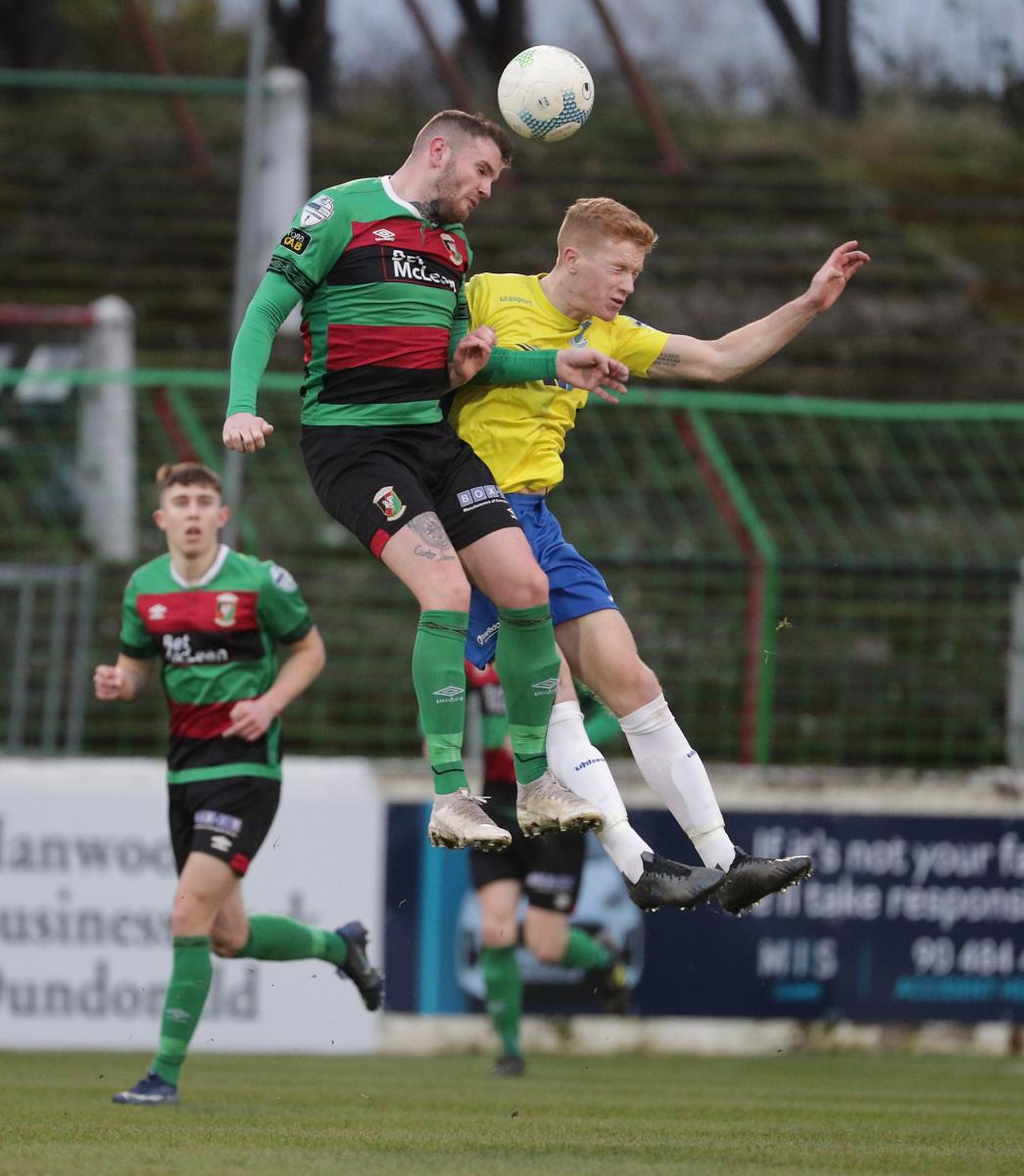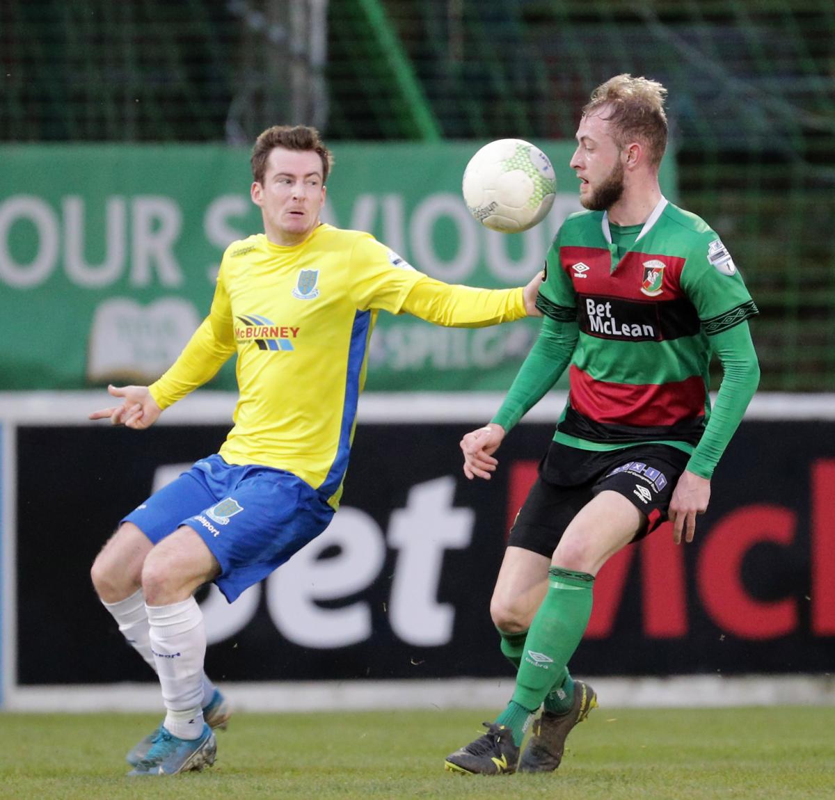 As the interval approached the visitors did venture forward, particularly down their left hand side but although crosses were put into the Glentoran penalty area, sound defensive work from both Birney and McClean snuffed out the danger.