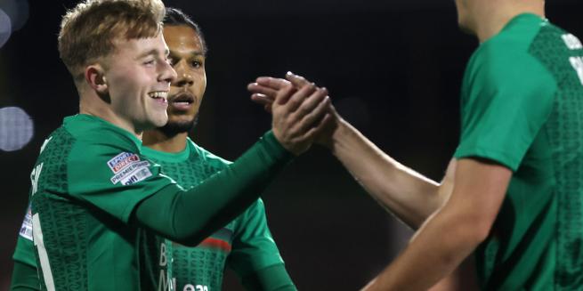 The subs almost immediately made a lasting impact, with James Singleton winning the ball back on the wide left with his first touch, and swinging a superb cross for Parfitt to chase within the six-yard box. Unfortunately however, he hit his low drive straight at the goalkeeper. Fisher and Singleton then duly combined to attempt the super-sub act with fifteen to play; an excellent passing moving between the two releasing Jenkins inside the box, who was unfortunate to see his first time shot fly wide. Danny Amos would leave the pitch shortly after, to be replaced by Frankie Hvid with ten to play to ensure defensive security. However, for all the home side’s pressure, it was Dergview who almost produced a final twist with just seconds left on the clock. An excellent team move produced a final shot