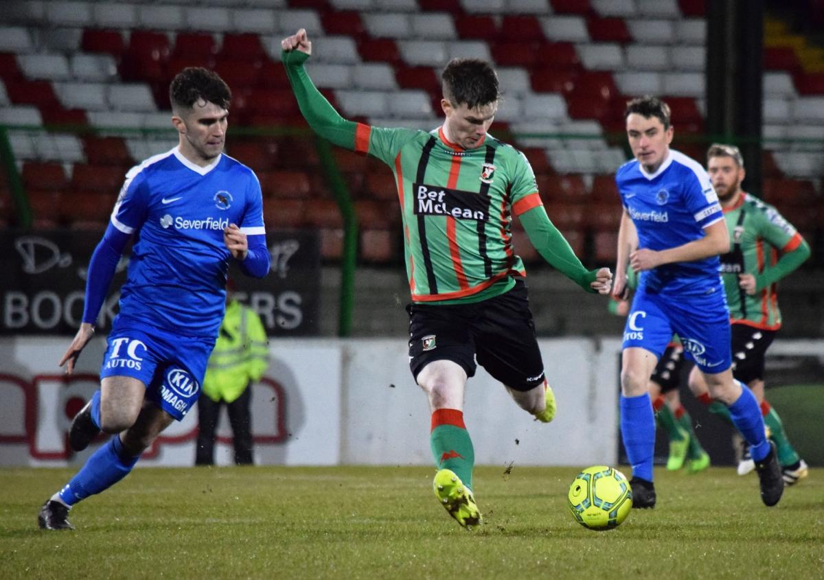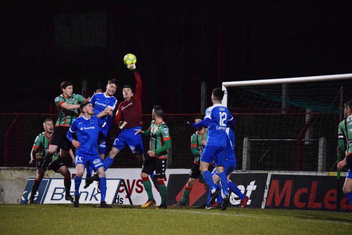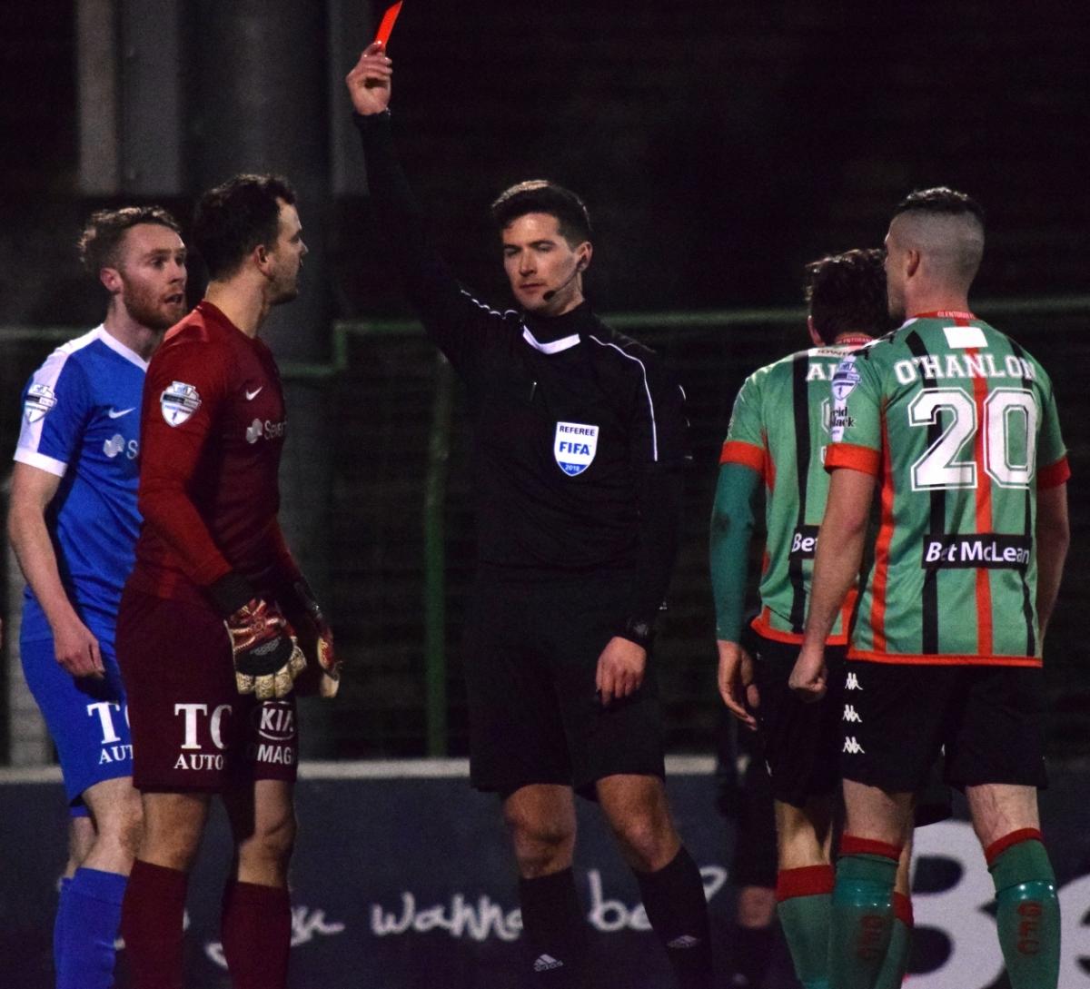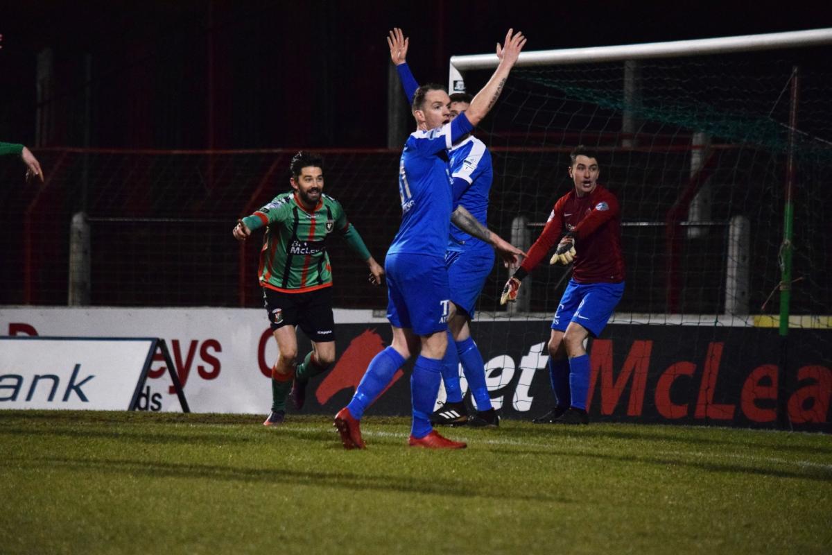 From this point it was always going to be difficult for the visitors but their task was made all the more difficult by the dismissal of David Kee when referee McNabb gave the Coleraine loanee what appeared to be a straight red card for his protest of the goal, even though the former Linfield man had also been booked for dissent earlier in the half. Glentoran were able to comfortably see out the remaining 10 minutes for a scrappy but much needed three points but Gary Haveron knows that his men will need to be sharper when they visit leaders Crusaders on Saturday.