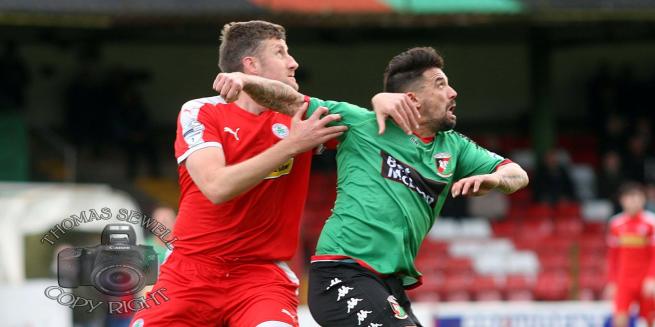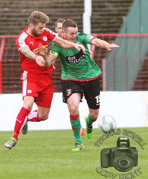 As the half continued and Cliftonville started to edge back into the game, the manager decided it was time to make two quick succession substitutions. Caldwell who put in a useful shift came off to be replaced by Jonathan Smith. Then to applause for both the leaving and oncoming players, when Novo was replaced by Marcus Kane returning from injury.