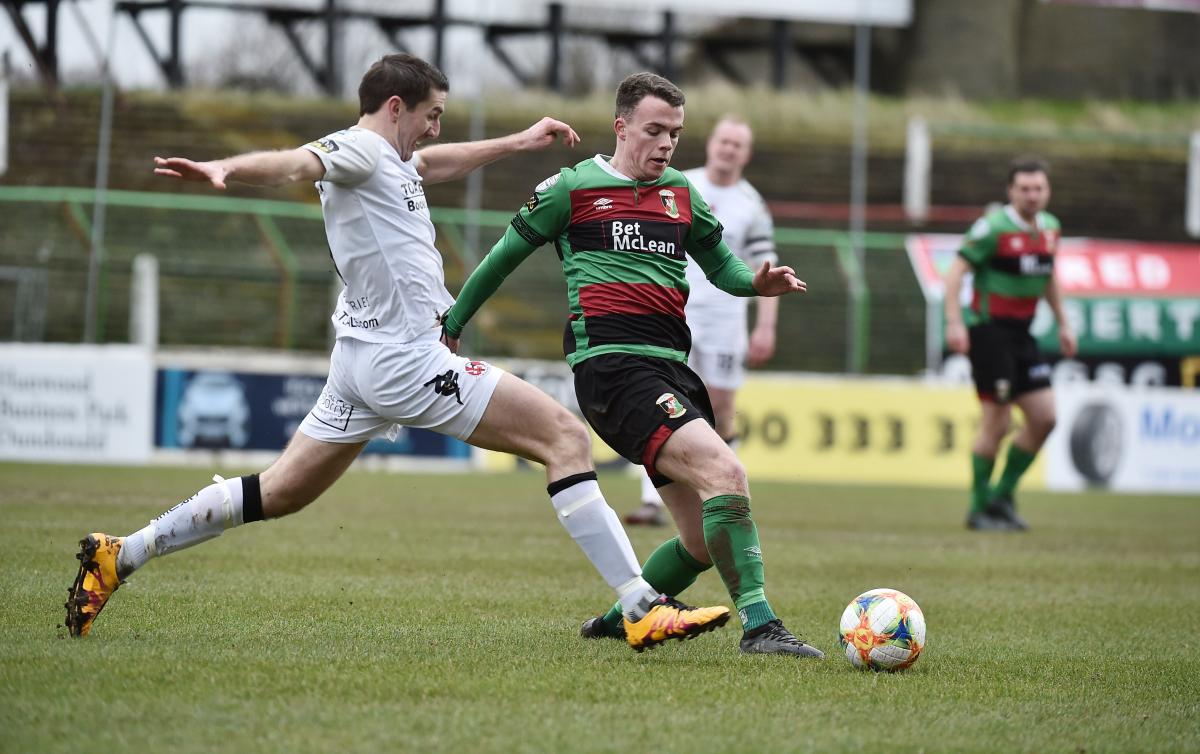 Despite the stronger start by the Glens, there’s always a nervousness against Crusaders and that proved justified on 31 minutes when Cushley played a sublime pass to Jamie McGonigle on the left wing. McGonigle cut inside and hit a shot from outside the box. The glens goal didn’t look in any great difficulty until the shot took a heavy deflection off Willie Garrett to wrongfoot the entire defence and give first blood to the holders.