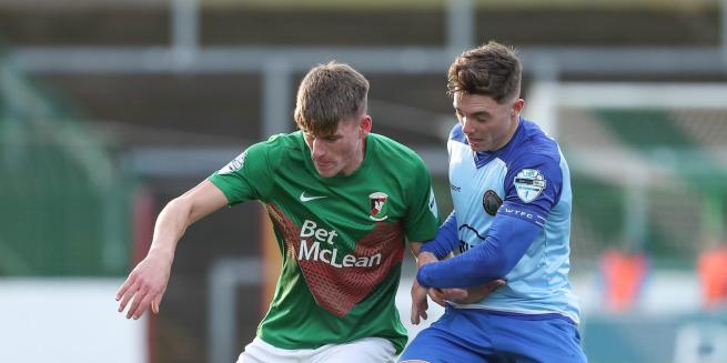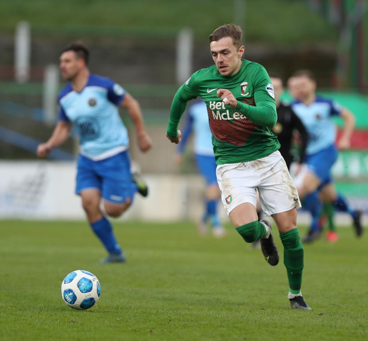 The Glens, with the benefit of a strong wind behind them, attacked the Sydenham End in the first half and went in front with just 1 minute and 20 seconds on the clock. Ben Cushnie was the architect, collecting a pass from Luke McCullough wide on the right and cutting past Jonathan Leddy. Cushnie's cross to the back post was headed home by Conor McMenamin for his 7th goal of the season. The Glens almost doubled their advantage on 6 minutes. Conor McMenamin won a corner on the left and Hrvoje Plum's wind assisted set piece almost caught out Conor Mitchell in the visitors' goal. A couple of minutes later McCullough and Cushnie linked up again. Again Cushnie delivered an excellent cross, looking to pick out Jay Donnelly on this occasion but former Glentoran defender, Gavin Peers intercepted and cleared the danger.