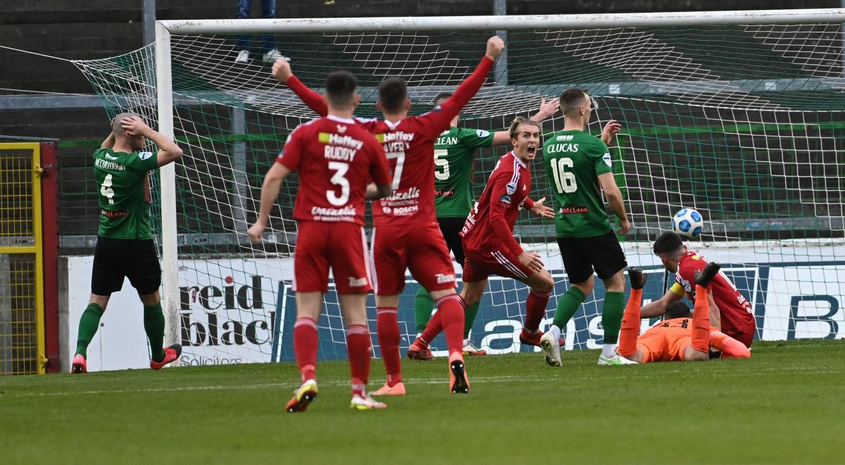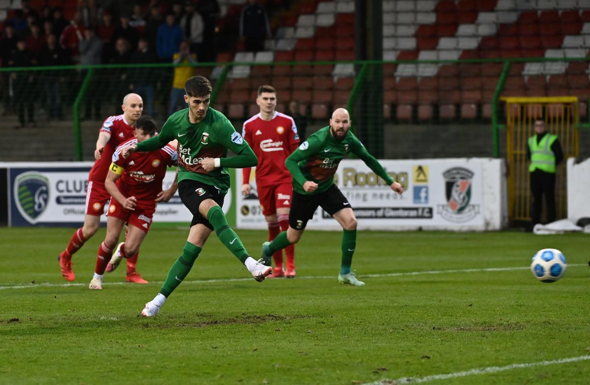 Glentoran went back in front midway through the second half. Conor McMenamin drove into the area and his cross was headed goalwards by Rory Donnelly. Adam McCallum kept it out, handling the ball on the goal line. Red card and a penalty. Jay Donnelly stepped up and slotted the ball home and the Glens had the advantage once more. The Glens had another great chance on 72 minutes when substitute, Robbie McDaid, robbed Nathan Kerr before firing a long forward pass to Jay Donnelly. The Glentoran number 9 saw his shot deflected behind for a corner. Hrvoje Plum swung it in and Paddy McClean's header was straight at keeper Barr.