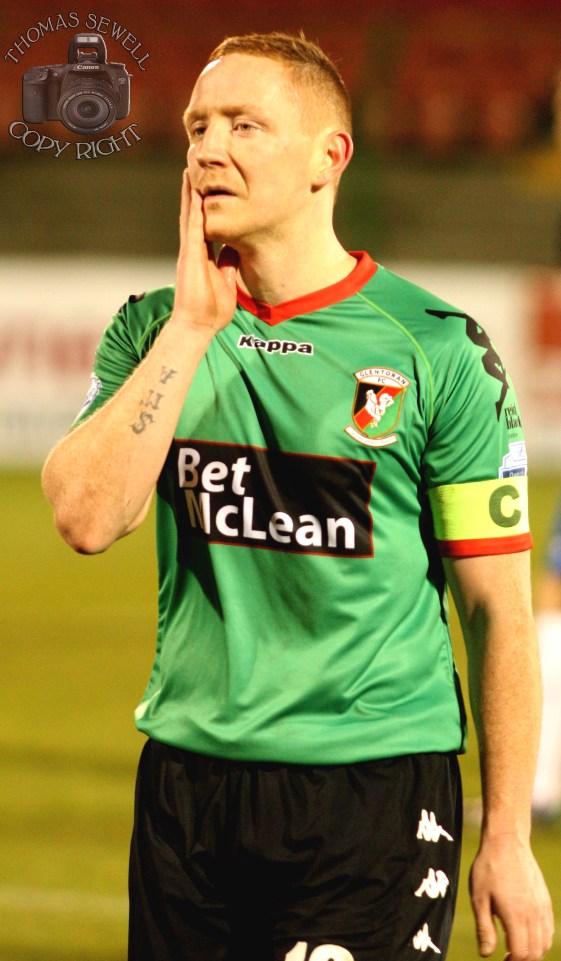 The Glens continued to push Ballymena, with Lavery particularly strong down the left hand side. In the 28th minute, a throw in by Ross Redman fell to Stephen McAlorum, who turned and swivelled on the ball. The angle of the ball resulted in it gliding across the goal mouth and into the top corner of the net, a great goal by the returning captain.