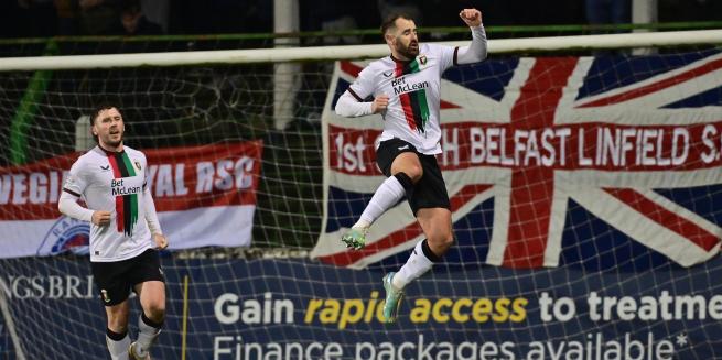 Glentoran: McCarey, Wightman, Russell, Singleton (captain), McClean, Sule, Palmer (R Donnelly 65), O’Connor (Boyd 75), McCartan (Feeney 82), McGinn & Fisher (Junior 82)