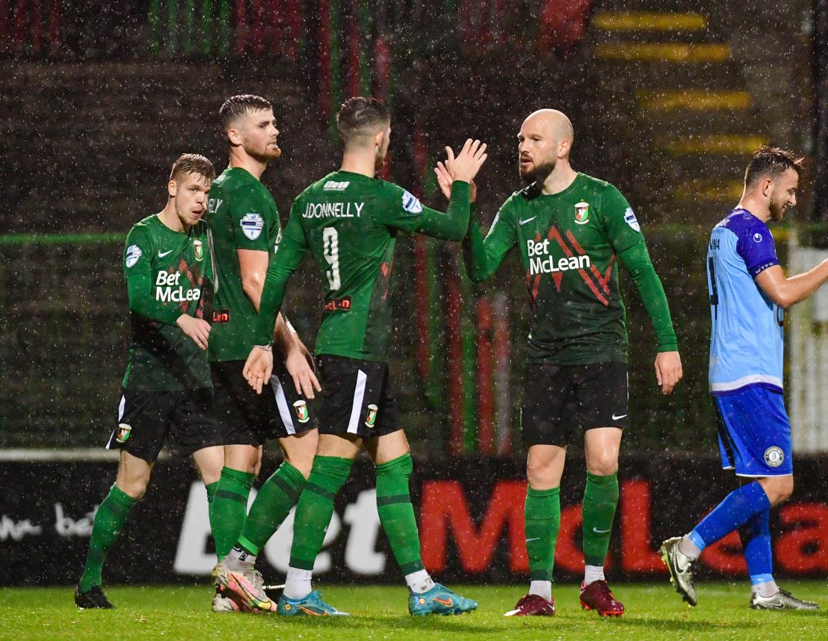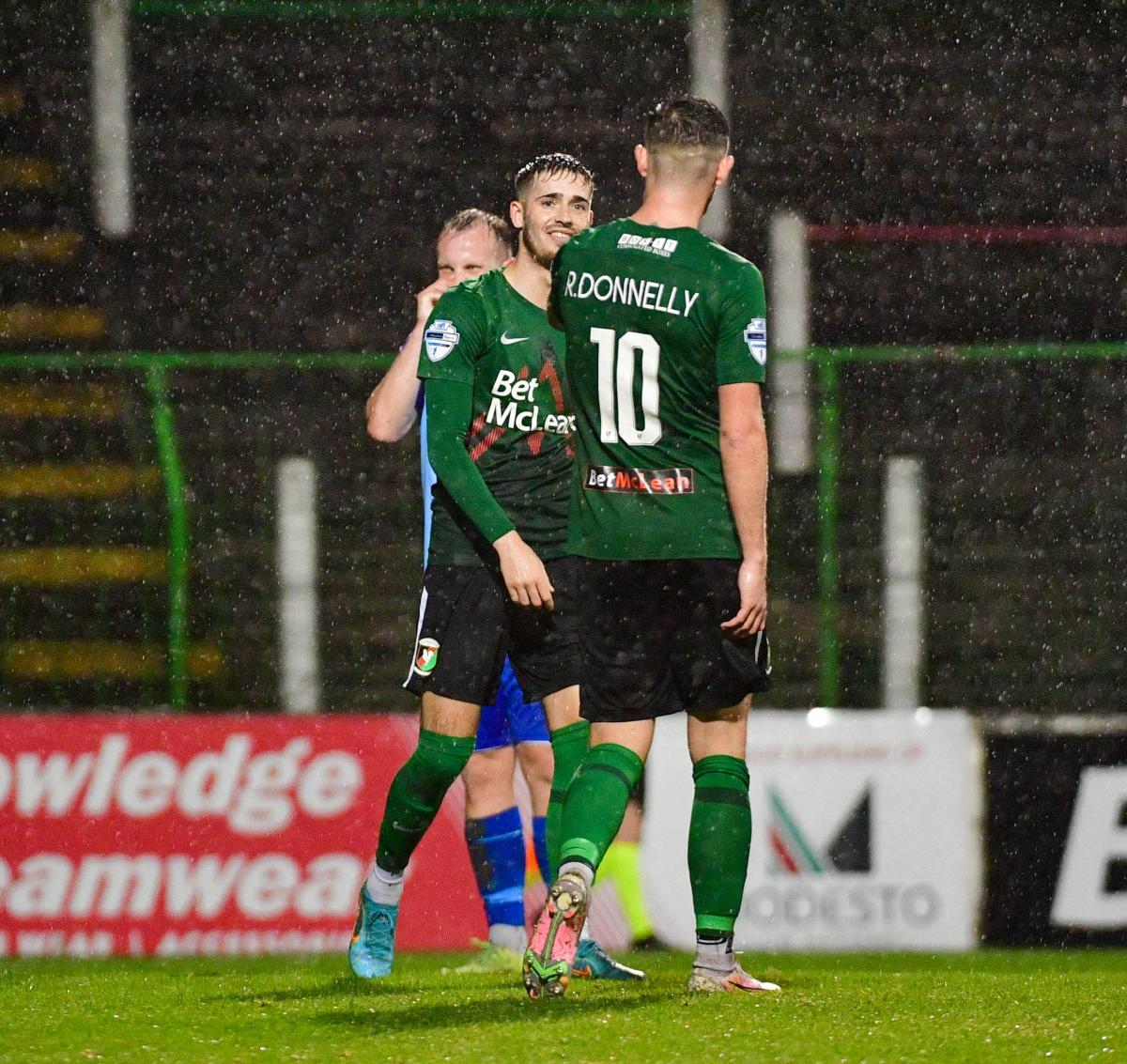 Perhaps with Friday night’s home Danske Bank Premiership game with Carrick. Mick McDermott opened the game with the same starting line-up as last weekend’s abandoned game with Ballymena United. Ally Roy and James Singleton remained unavailable, but Terry Devlin was on the bench following his injury sustained on international duty last week.