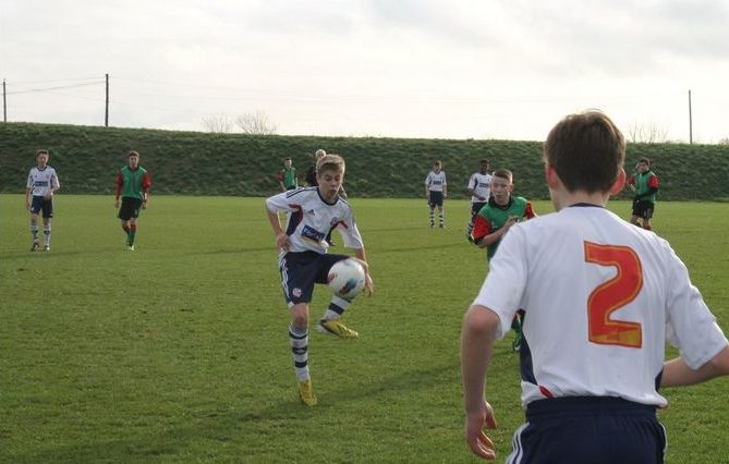 Next up our under 12 took on their City counterparts and turned in the performance of the day securing a brilliant 3-1 win. Star in the making Barry Baggley opened the scoring with a glorious long range effort before Callum McVeigh scored to make it 2-0. Just as in the under 13 match – City made it a nervy finish by pulling back to 2-1 but Peter McKiernan settled those nerves with a thunderous right foot volley into the top corner.