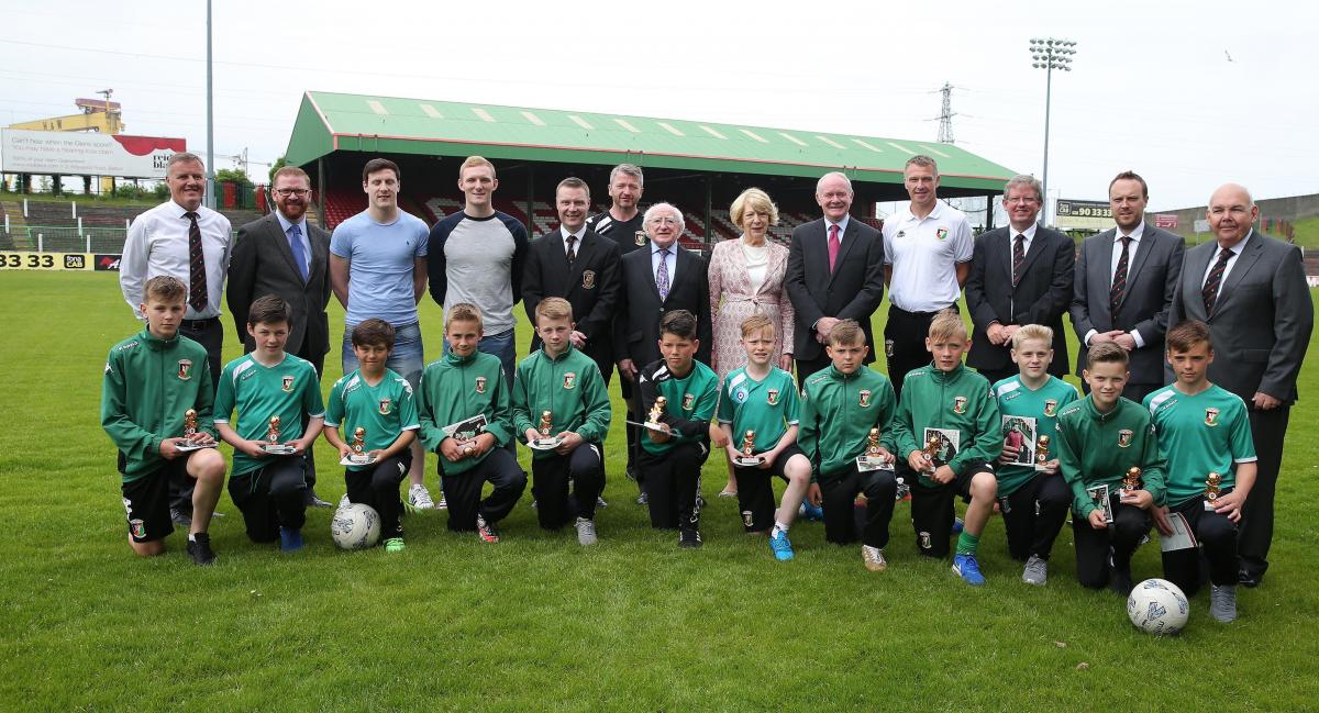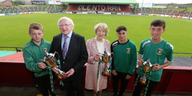 President Higgins – a former President of Galway United in the League of Ireland – observed the full presentation of awards and met with the captains of the Glentoran Under 16, Under 15 and Under 12 teams. Each of these teams won the Irish Cup at their respective age level in the season just finished.